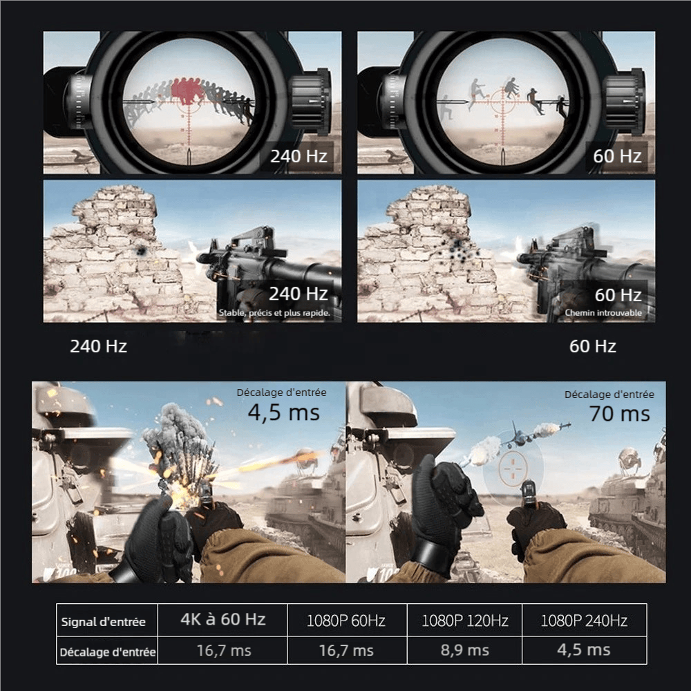 L’OPTOMA UHD35+ offre un taux de rafraîchissement ultra-rapide de 240 Hz ainsi qu’une faible latence d’entrée, garantissant une expérience fluide et sans décalage. Idéal pour le gaming où chaque milliseconde compte, il assure une réactivité parfaite lors des scènes d’action rapides et des compétitions en ligne. Vous profitez d’une image nette, sans flou de mouvement ni distorsion. Le UHD35+ supporte le 1080p à 240 Hz, idéal pour les joueurs recherchant une fluidité maximale en Full HD.
