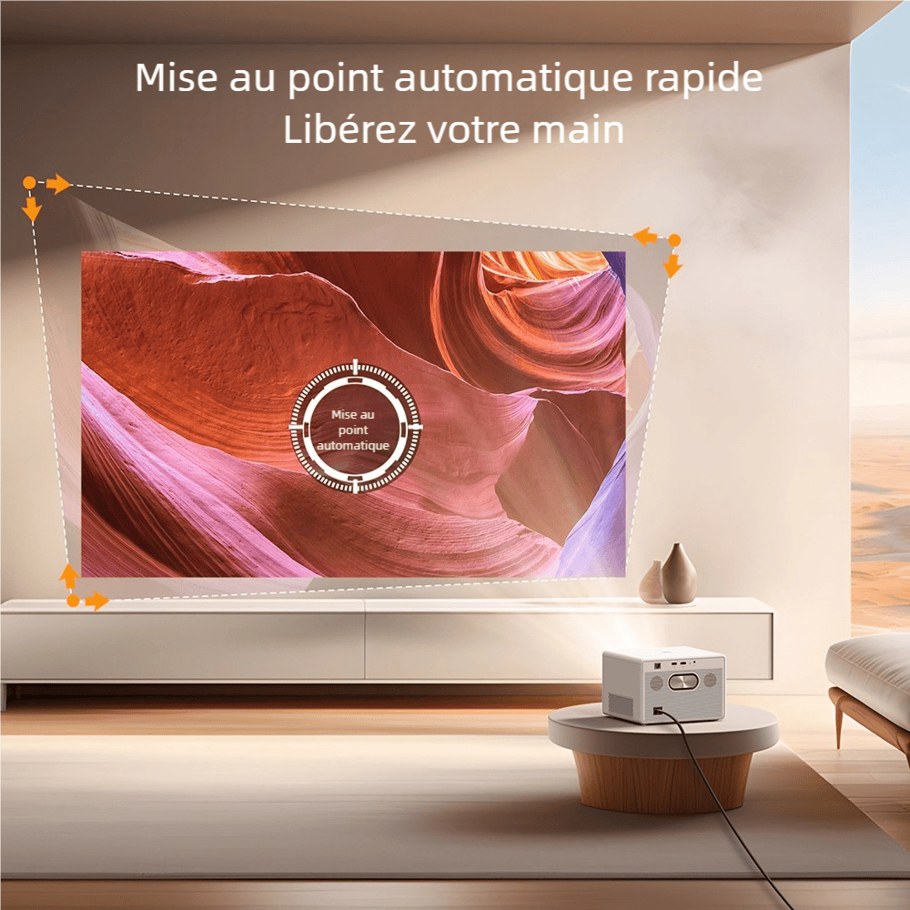 Ce vidéoprojecteur portable est doté de fonctionnalités pratiques pour simplifier l’utilisation au quotidien. Grâce à la mise au point automatique et à la correction trapézoïdale à six voies, il s'ajuste automatiquement pour offrir une image parfaitement cadrée, sans effort. L’interface Android 9.0 vous permet de télécharger des applications et de streamer directement vos contenus préférés, tout en bénéficiant de la connexion Wi-Fi pour une expérience 100% sans fil.
