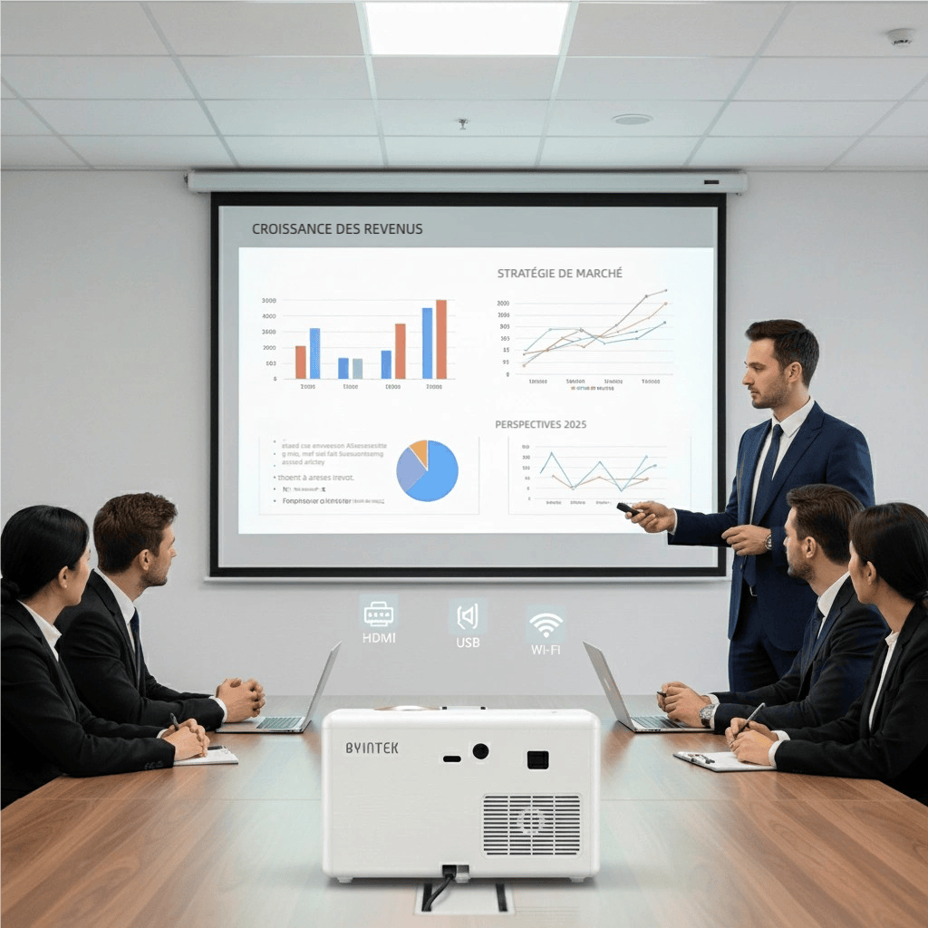 Le vidéoprojecteur Lumens LCD 1080P ne se limite pas aux films. Il est parfait pour le gaming grâce à sa faible latence et son mode jeu optimisé. Il convient également aux présentations professionnelles avec ses nombreuses options de connexion (HDMI, USB, Wi-Fi). Capable de projeter jusqu’à 200 pouces, il devient un outil indispensable pour les réunions, conférences et moments de divertissement.