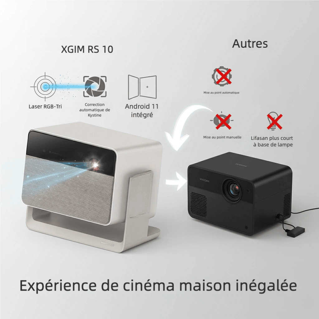 Contrairement à de nombreux projecteurs dans la même gamme de prix, le XGIMI RS 10 Mini offre une véritable expérience haut de gamme grâce à son autofocus automatique et sa correction de trapèze intégrée. Son système Android 11 élimine le besoin de connecter un appareil externe pour diffuser vos contenus, rendant son utilisation encore plus simple et rapide. Sa lumière laser RGB-Tri garantit une luminosité stable, des couleurs éclatantes et une durée de vie prolongée, vous assurant un home cinéma performant pendant des années.